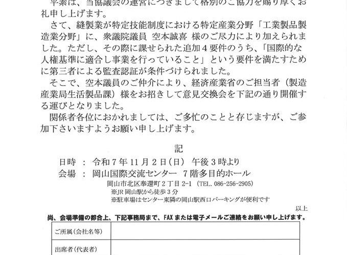 経営が厳しい中小零細企業による繊維産業の団体を9/28に設立させました。